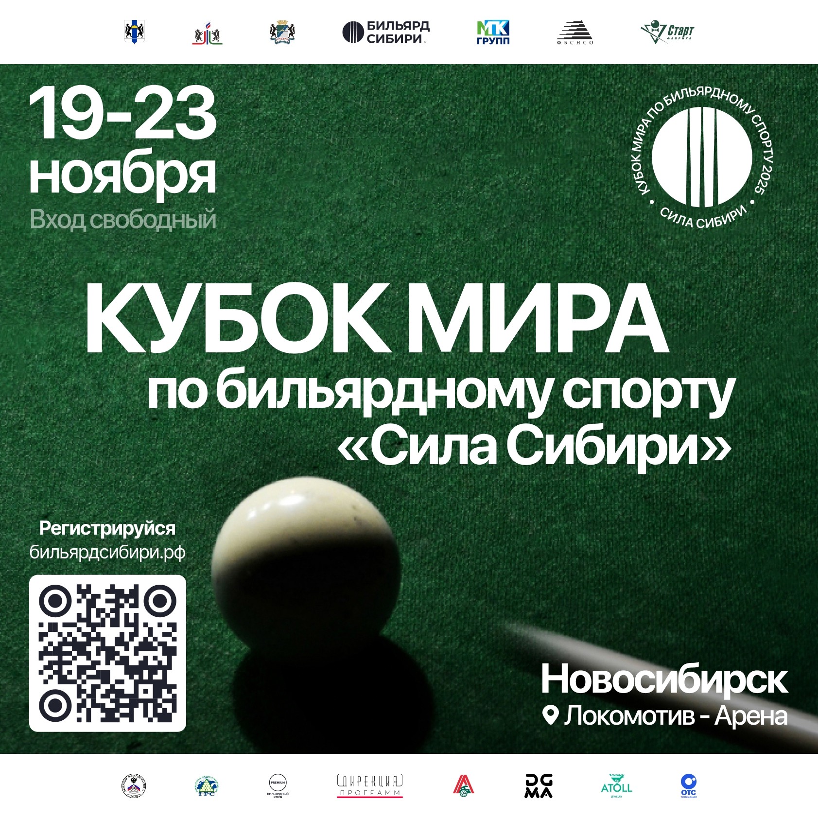 С 19 по 23 ноября 2025 года в РВЦ «Локомотив Арена» (ул. Ипподромская, 18) состоится кубок мира по бильярдному спорту «Сила Сибири», сообщает пресс-служба областного