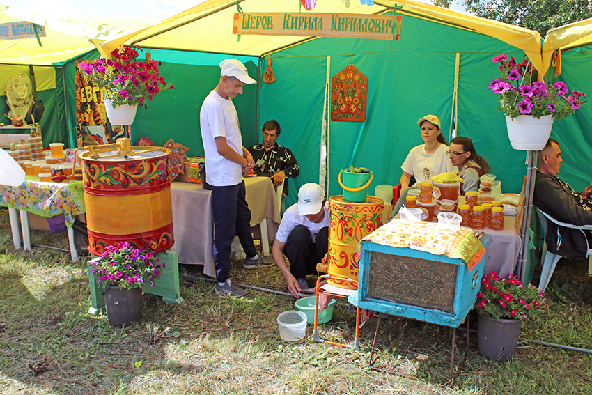 В этом году на площади села собралось 13 пчеловодов из Черепановского, Сузунского, Маслянинского районов, а также Алтайского края, которые представили медовую продукцию и оригинально оформили свою палатку.