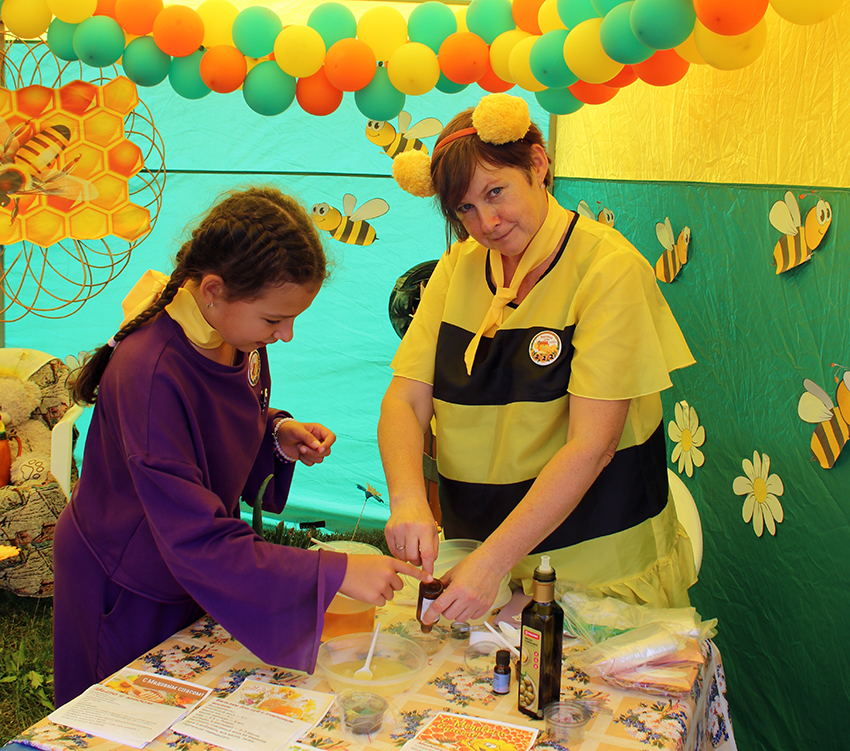 В пользе этого сладкого продукта не сомневается никто. Применение мёду нашлось в различных сферах жизни, в том числе и в активно развивающейся сегодня индустрии красоты. В одной из раскинувшихся палаток работница Верх-Мильтюшинского Дома культуры прямо на ваших глазах изготавливала скрабы, патчи, маски для лица. «Специально к этому празднику я изучила в интернете информацию о натуральной косметике на основе мёда, – рассказала Диана Шатович. – Посмотрела рецептуру, попробовала сделать, протестировала на себе и осталась, кстати, очень довольна». Тут же Диана Сергеевна смешала мёд с лимонным соком, оливковым маслом и витамином «Аевит», который очень полезен для кожи, и получилась настоящая уходовая косметика, да к тому же натуральная, без химических отдушек и добавок.