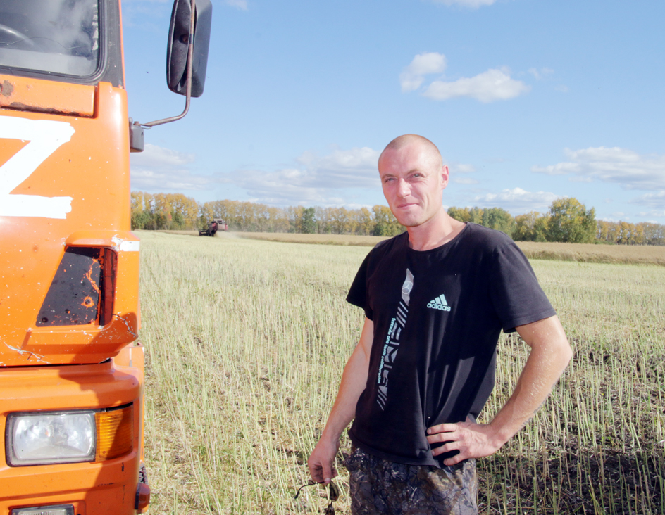 Хватает одного бункера, чтобы «МАЗ» Анатолия Голощапова был заполненным. Водитель с позитивом смотрит на нынешнюю уборку. Всё складывается удачно. Вот и погода немного подобрела и даёт возможность убирать зерно. Пусть влажность у него немного больше положенного, но после подработки будет в самый раз. Заприметив на краю поля мигающий огонёк, он тотчас устремляется к остановившемуся у кромки комбайну Александра Томилова. Из шнека, как-то непривычно глазу, толстой струёй льётся чёрное мелкое зерно, а не золотое, как пшеница. Это на сегодня чёрное золото крестьян, дающее возможность экономической стабильности. Недолгая разгрузка и – снова в работу. Комбайн встаёт в свою полосу и Александр Томилов спешит догнать других механизаторов – Олега Иоста, Николая Иванова, Александра Пешеходько.