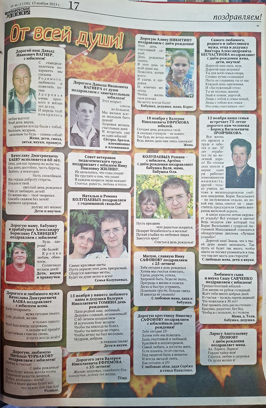 Наверняка, каждый знает нашу постоянную рубрику «Поздравляем». Существует она ещё с 70-х годов прошлого столетия и является одной из популярных среди наших читателей. Об этом они ни раз сами признавались. Эта рубрика платная, но именно здесь вы можете выразить все самые добрые слова дорогим и близким людям.