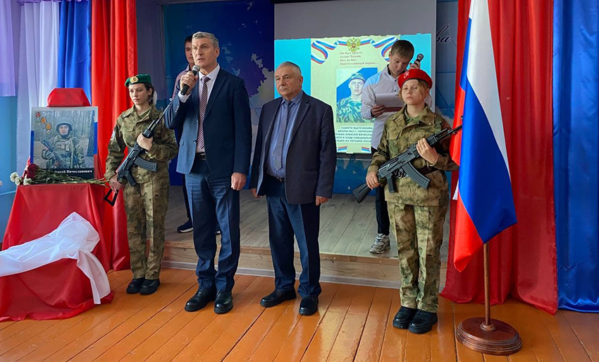 На церемонии присутствовали почётные гости: глава Черепановского района Сергей Николаевич Овсянников, председатель Совета депутатов Владимир Михайлович Капич, родственники Алексея.