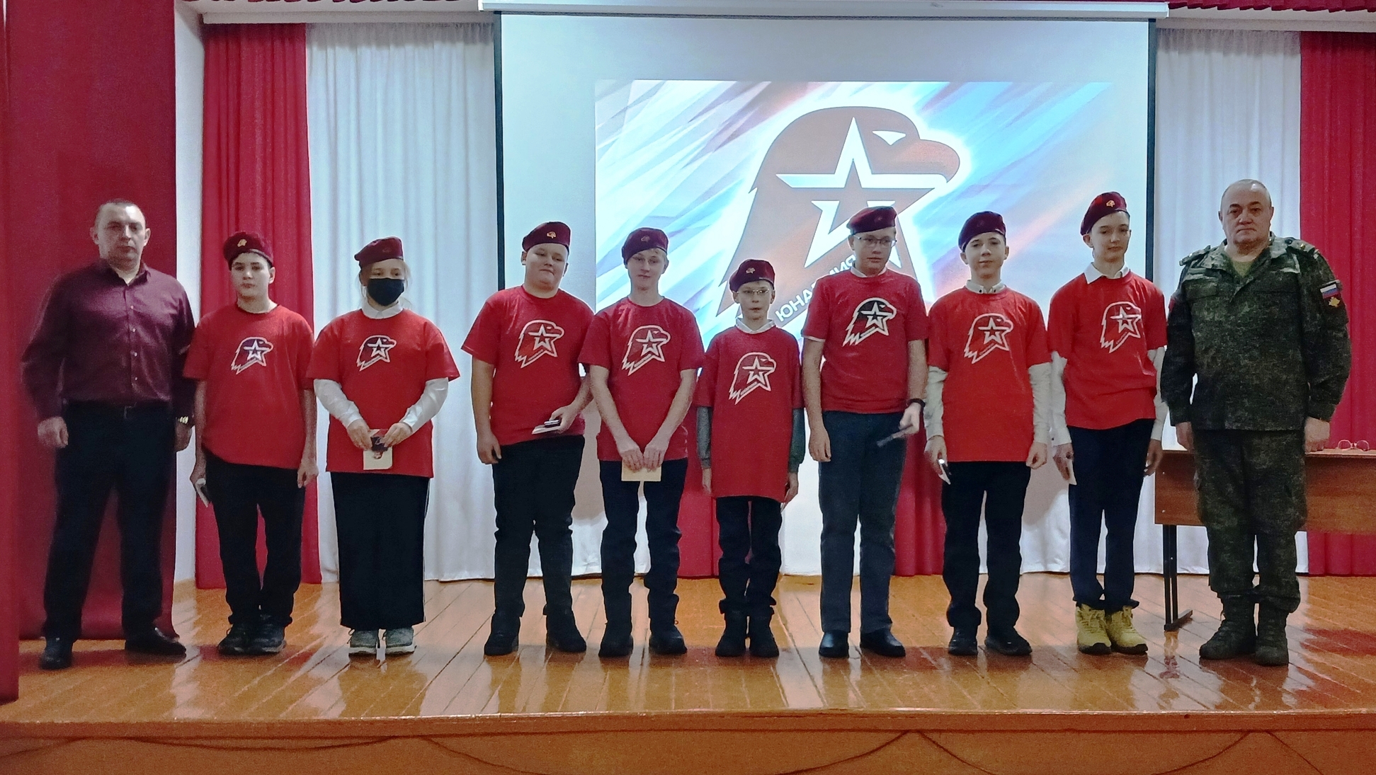 Один из важных моментов в церемонии – вручение личной книжки, удостоверения и значка юнармейца от начальника местного штаба А. С. Козловского и председателя ассоциации ветеранов СВО А. А. Артемьева. Для юнармейцев это не просто подарок, а напоминание о том, что каждый из них теперь является частью великого дела – защиты своей страны!