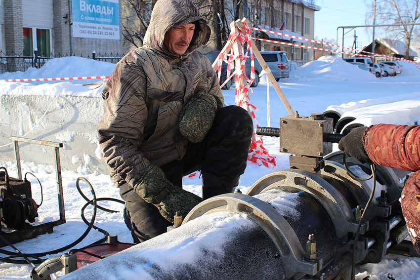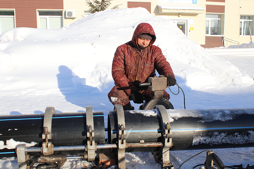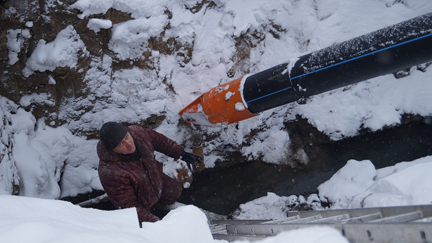 Пронизывающий ветер, морозец подгоняли людей, однако сложность работ призывала не торопиться. Медленно огромная труба нового коллектора встала на место. На это ушёл практически весь день.