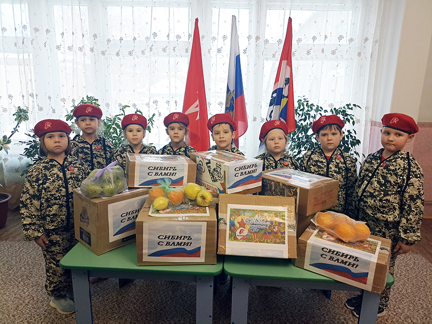 Юнармейцы отряда «Звезда» детского сада № 1 «Рябинка» под руководством Е. А. Самойловой, несмотря на юный возраст, активно присоединилась к акции. Дружно вместе с родителями собрали много подарков для наших бойцов. Каждая посылка стала настоящей частичкой тепла и заботы из дома.