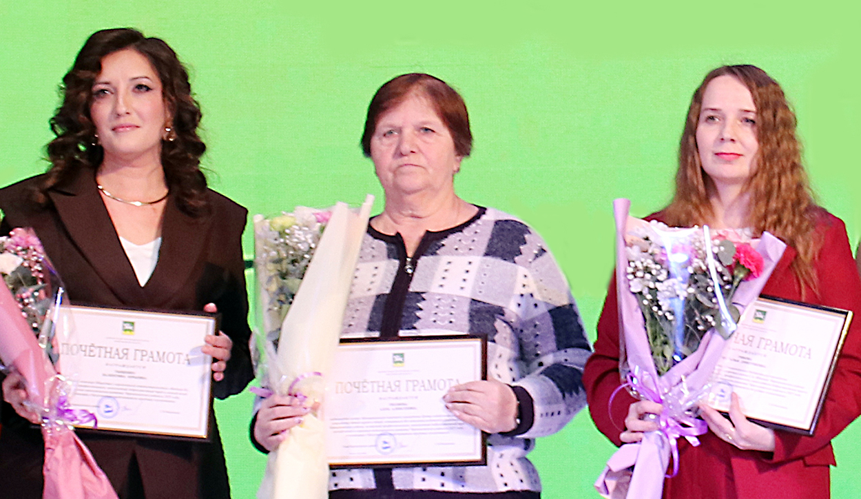 Почётной грамотой главы района награждены кадастровый инженер ООО «Вектор-Н» Валентина Юрьевна Тыщенко, медицинская сестра Центра содействия семейному устройству детей-сирот «Дорогинский» Алла Алексеевна Тюляева, глава бухгалтерского районного социально-культурного центра имени С. Жданко Наталья Дмитриевна Рябова