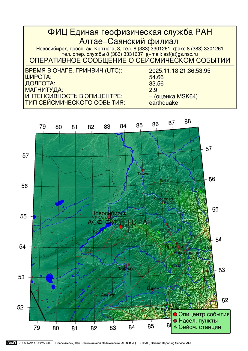 Землетрясение произошло на территории Искитимского района в ночь на среду. Подземный толчок был зафиксирован 19 ноября в 1.36 по местному времени. Об этом сообщает