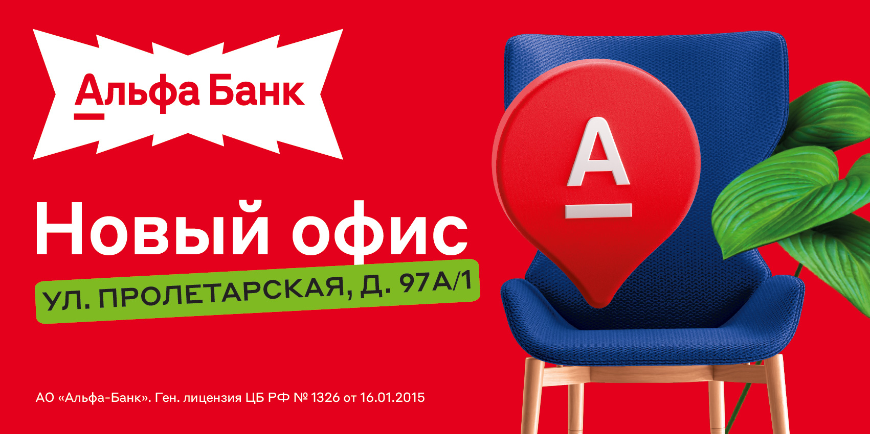 Офис Альфа-Банка расположен по адресу: город Черепаново, улица Пролетарская, 97-а/1