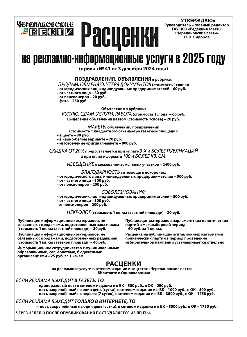 - Реклама печатается на специальных цветных рекламных полосах (21, 22, 23).